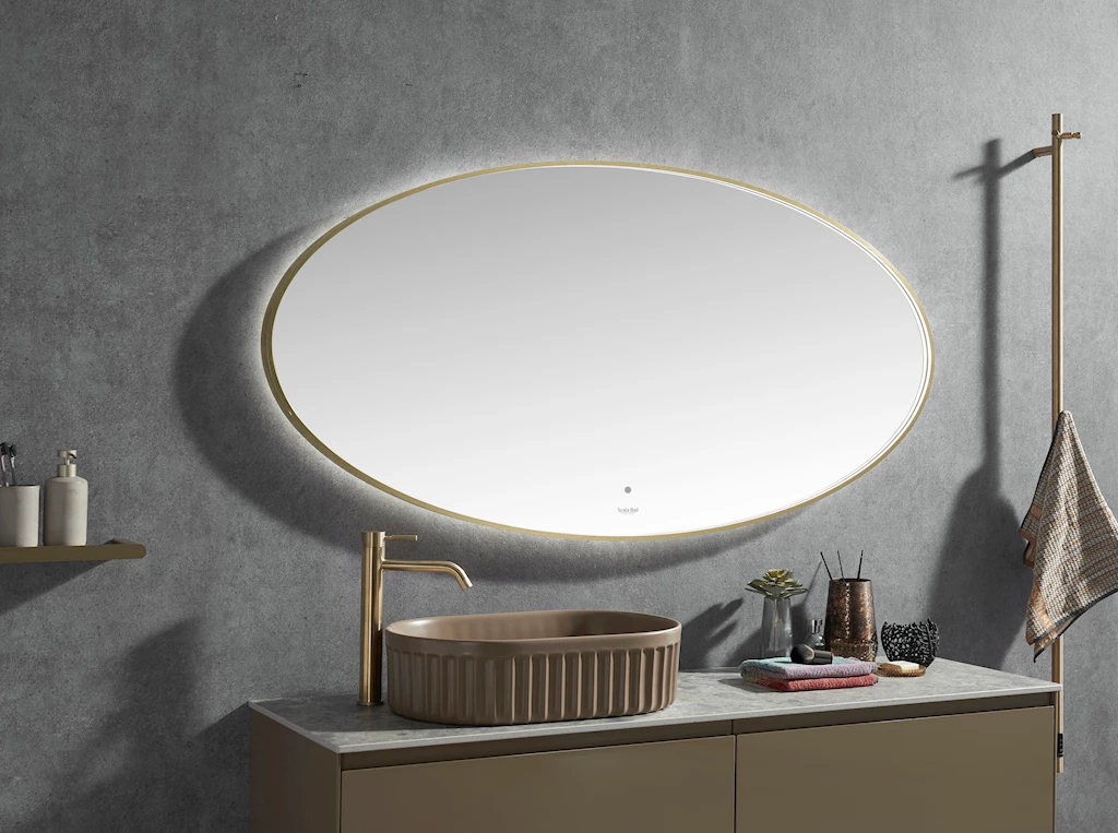 Speilet Tropea er designet med en lang oval form og har en lekker ramme som kommer i 3 ulike overflater. Tropea kommer med Backlight og GHOST frontbelysning innebygget i speilets ramme.